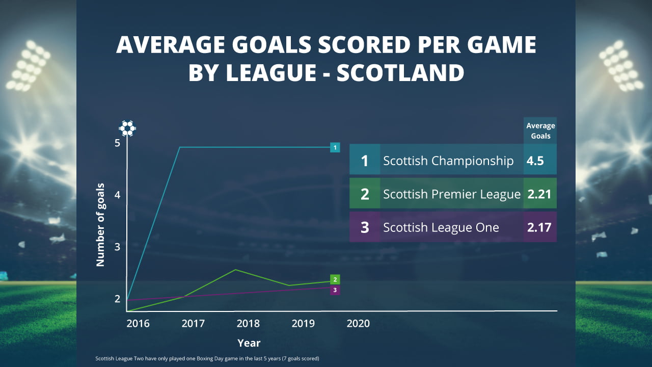 - Scottish Championship and English National League can expect to see the most Boxing Day goals this year, scoring 4.50 and 3.27 goals per game on average.